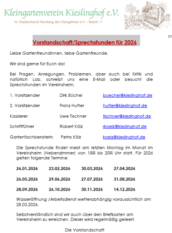 Liebe Mitglieder des KGV Kieslinghof e.V.,